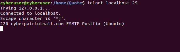For this scenario, you are using cyberuser. Your task today is to take a look into your company’s Postfix SMTP server. While not fully developed or implemented yet with an entire mail system, they want to make sure that the SMTP server is secure enough before moving on.