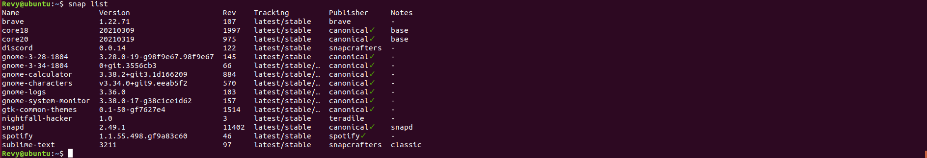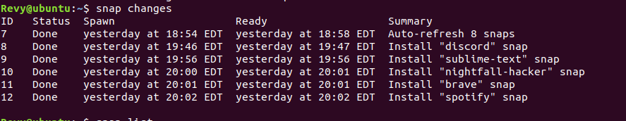 If you want an easier way of tracking the new ones installed, you are in luck! There is another command that lists a history of the snap command on your system, this is the snap changes command. Using these two commands you can get conclusive evidence of what applications were installed on here!
