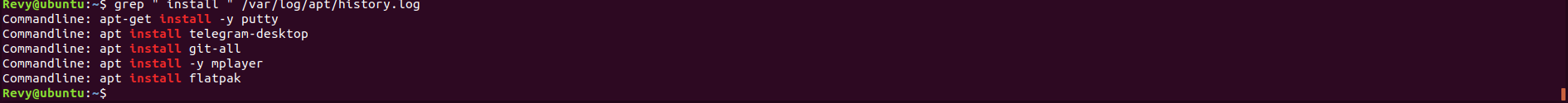 However, before ending our journey, I should mention that there is another way if you want to see your most recently installed packages. To do so run the command grep “ install “ /var/log/apt/history.log this will list all of the most recently used apt commands that feature install within the command, very useful to track some of these applications that were installed locally on the machine a bit quicker.