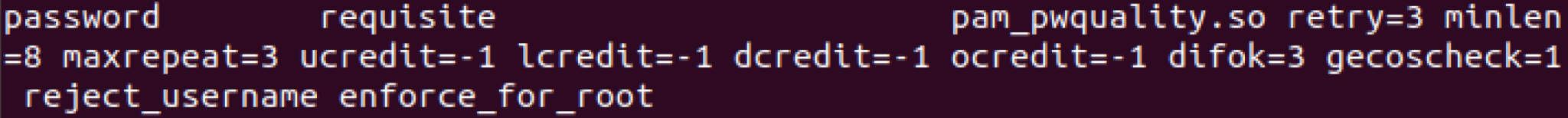 In here, we are going to need to change a specific line, that being the line that mentions password requisite pam_pwqaulity.so retry=3. We are going to change a lot of this, in the end it should look like the image below:
