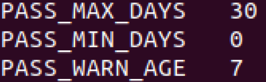 Our last Password change we want to complete here lies within the file of /etc/login.defs, go ahead and use a text editor to gain access into it and once you have done that, look for the PASS_MAX_DAYS line and change the amount of days from 99999 to 30! This will make it so you can only keep a password for 30 days before needing to change it! With these two policies intact, our passwords are now quite safe as well as our machine!