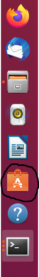 Believe it or not, there is indeed another way you can view most of your snap packages! That is via the Ubuntu Software Centre! Go ahead and look on the right hand side of your screen, and look for an orange shopping bag of sorts, it should look like this!