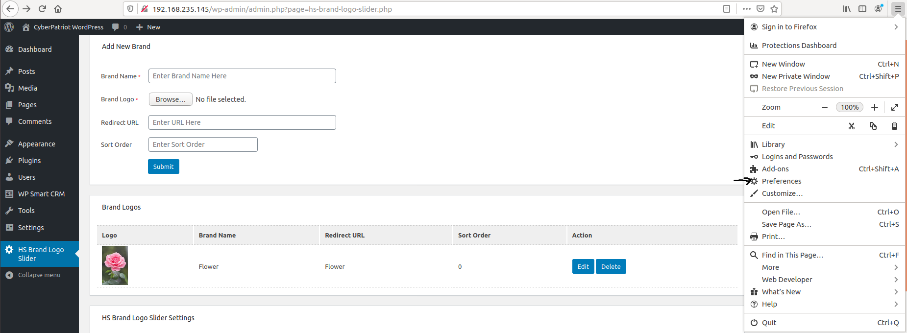 As mentioned earlier, you are able to upload your own logos to your WordPress server! To test this name your Brand Name flower, and then click Browse to choose a file to upload. Navigate to your Downloads folder and then choose the Flower.jpeg. Once done, you can go ahead and click submit to see your Flower get uploaded. But how do we navigate to this? Well, anything that gets uploaded to WordPress, either plugin, theme or anything else gets put in a specific directory, lets navigate to it.