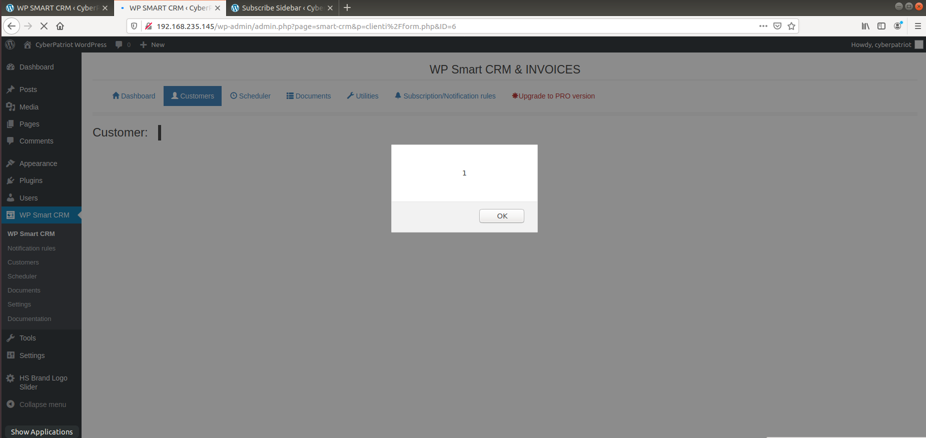 This will keep on causing the alert to come up, whenever this page loads, not only that but if you click back on the customers tab, and then click edit on the customer we made, the XSS attack will always be able to run! This means there is a possibility of a persistent attack always being up whenever we try to access that user while this plugin is still accessible on our server.