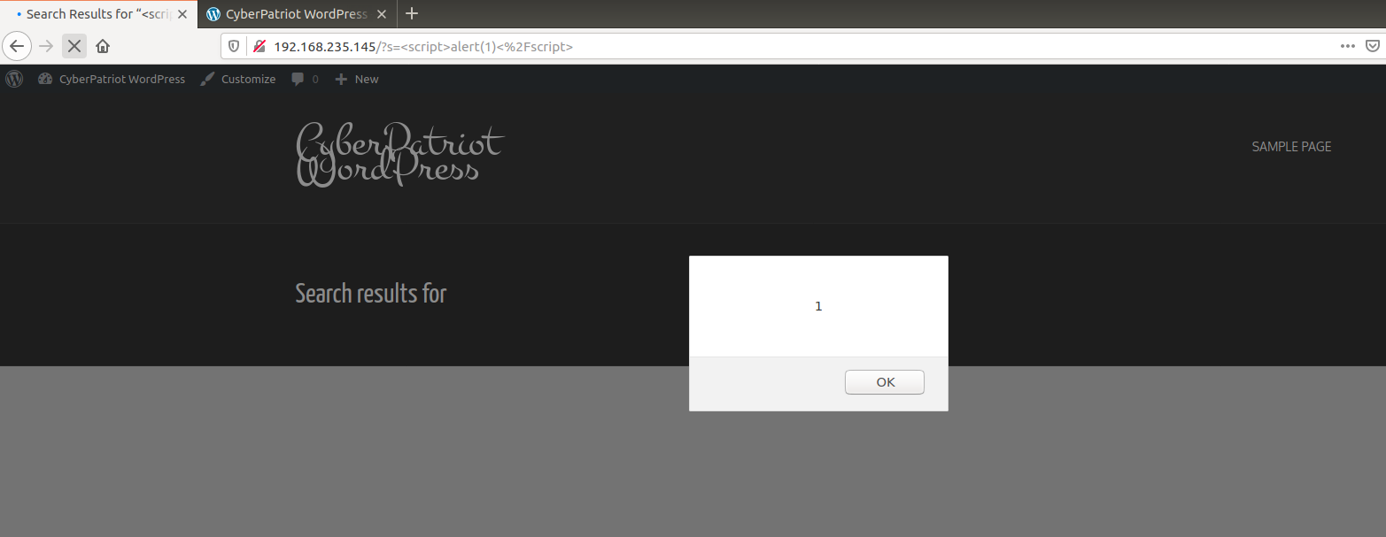 http://cyberpatriot/?s=<script>alert(1)<%2Fscript>