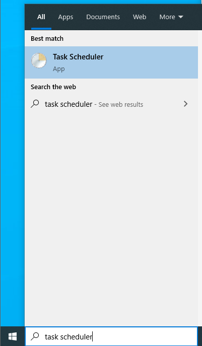 Scheduled tasks is another feature in Windows that can be abused for privilege escalation. Click on the Windows search bar, type task scheduler, and open the program.