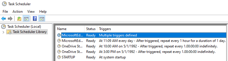 Click on Task Scheduler Library and look at the various tasks on the system. Most legitimate Microsoft tasks are created with descriptions and have specific schedules. Do any tasks look suspicious?