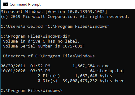 The directory, C:\Program Files\Windows, doesn’t exist on a