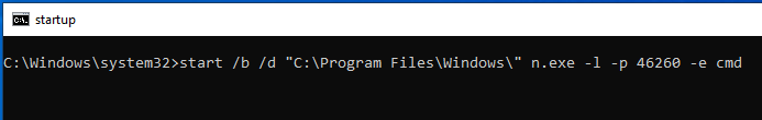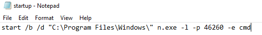 n.exe -l -p <PORT-NUMBER>; -e cmd