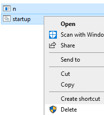 Cut in the right-click menu and pasted elsewhere to stop startup.bat