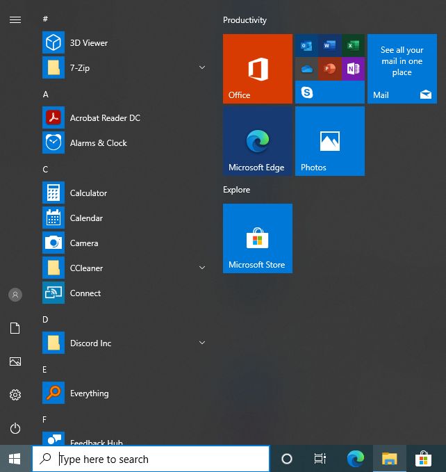 Additionally, many programs are linked to the Windows Start menu when they are installed. Click the Windows icon to bring up the bar or use the Windows key on your keyboard to bring up the Start Menu: