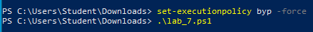 Change directories to the folder containing the PowerShell script.. This will vary depending on the location of the file and the username on the Virtual Machine. Set the execution policy to allow the script to run, and execute it with the dot-backslash command:
