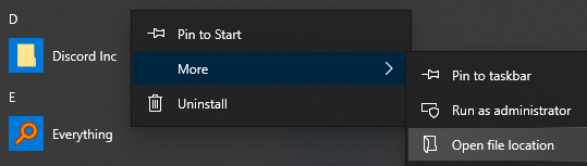 To view the actual location where a program is installed, right click on an entry in the Windows Start menu and browse to the file location: