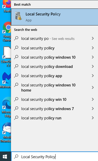 System administrators have multiple ways to help prevent users from installing unnecessary software, even when users in an organization are local administrators. A powerful built-in Windows feature that can accomplish this task is AppLocker. To configure AppLocker settings on this local machine, open the Local Security Policy editor by searching for it in the Windows Start Menu: