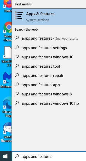 This can also be performed by going into the Windows Start Menu, right clicking items, and selecting Uninstall. Some utilities will not be present in Apps and Features and will need to be uninstalled in this way.