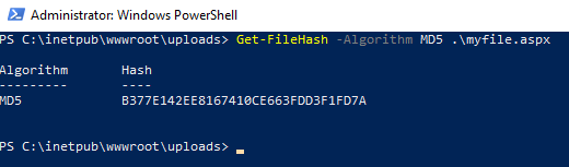detect common webshells. In an administrative PowerShell prompt, the MD5