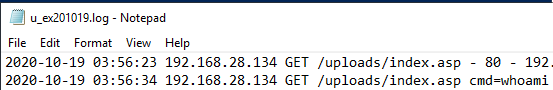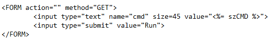 This is an example of an Active Server Page (ASP) webshell. ASP precedes ASPX in age but maintains similar features. Placing a command in the input box and clicking Run will execute this command on the server. Inspecting the file itself shows that this web shell is placing the command on the request line as part of the HTTP GET request.