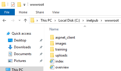 Navigate to C:\inetpub\wwwroot on the server. This is the default