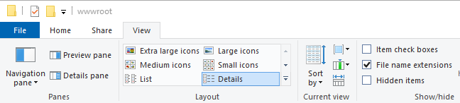 Enable file name extensions in Windows Explorer to examine the types of files on the server: